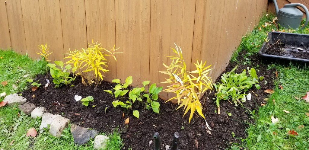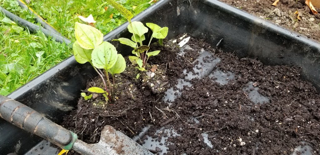 Waiting for cooler temps in October, the young plants were transplanted into new gardens, and they are now thriving. Check out the pics below. All this from less than $20 for seeds! And recently, Gwen planted eight white oak acorns. A Craneridge tree nursery in the works?