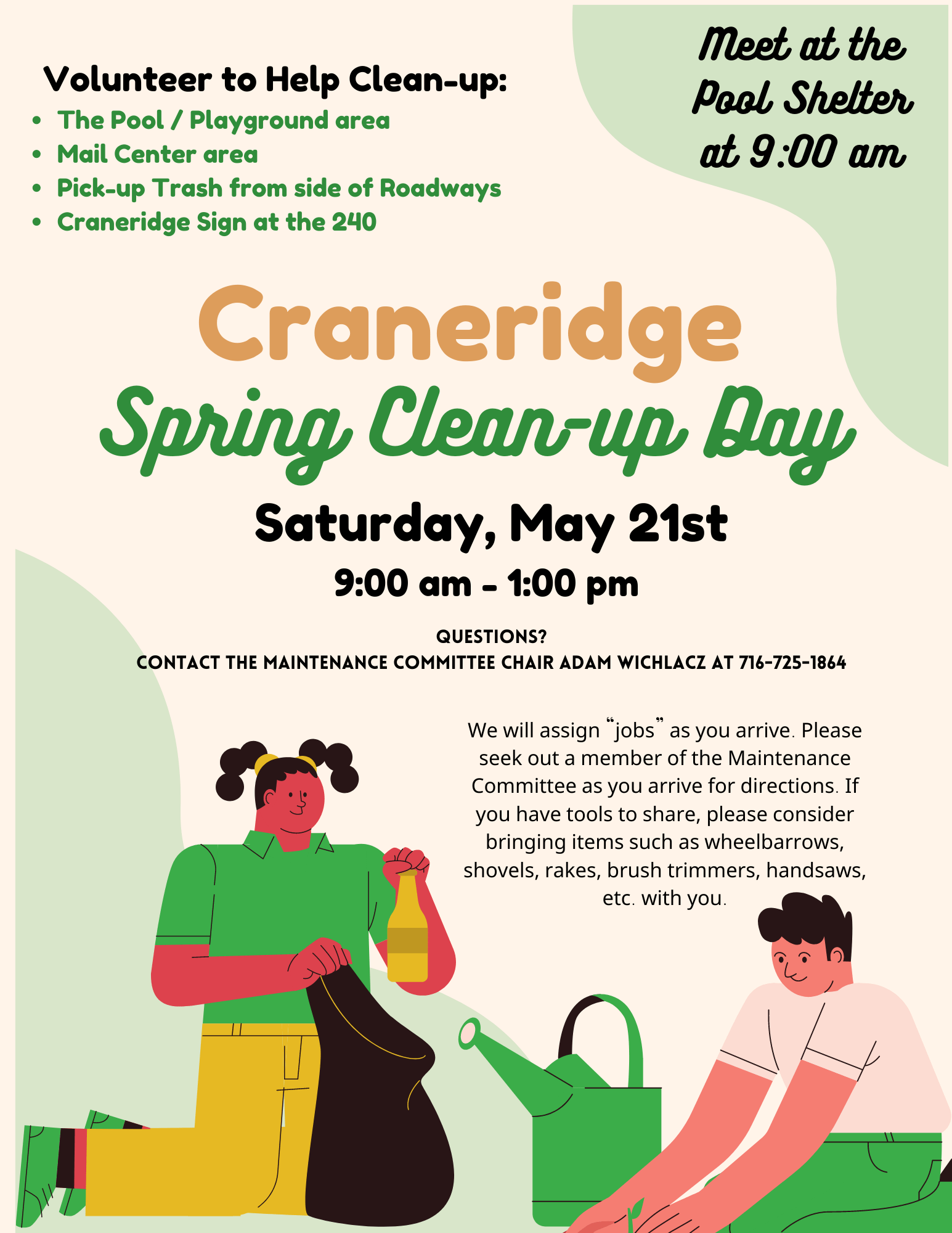 Craneridge Spring Clean-up Day, Saturday, May 15th – Volunteers Needed