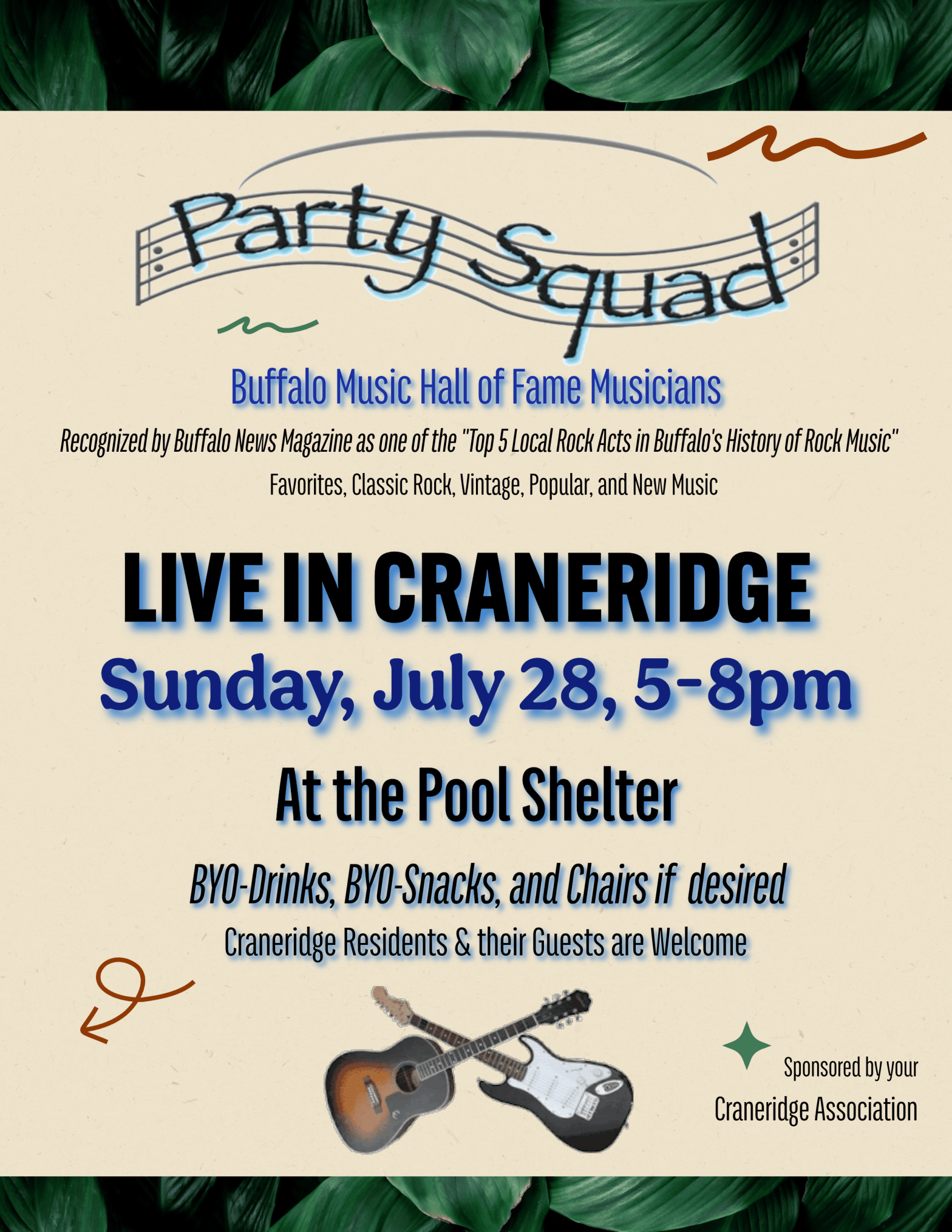 Don’t miss Craneridge’s Summer Social Event! Join us for an unforgettable evening with Buffalo Music Hall of Fame Musicians! Enjoy your favorites, classic rock, vintage, and new music. 🎸 The Party Squad 🎸 Recognized by Buffalo News Magazine as one of the “Top 5 Local Rock Acts in Buffalo’s history of rock music.” 📅 Sunday,Continue reading “Live Music in Craneridge! Sunday, July 28th 5 – 8 pm”