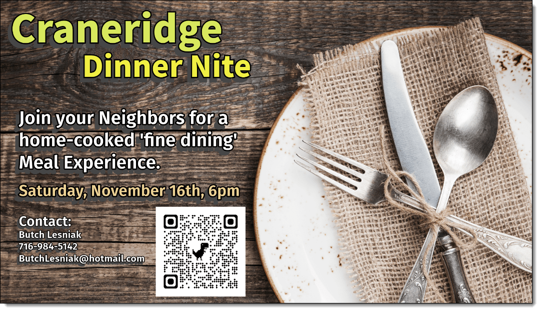 Craneridge Dinner Nite Sign-up for Saturday, November 16th (6pm)