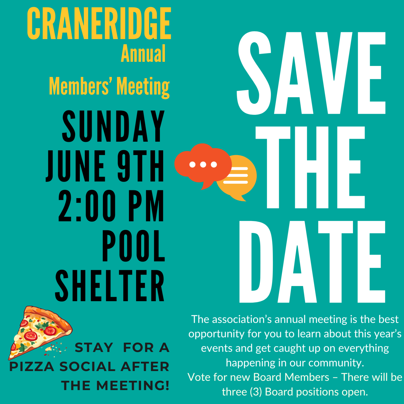 The association’s 🎉 annual meeting is the best opportunity for you to learn about this year’s events and get caught up on everything happening in our community. 📆 Vote for new Board Members – There will be three (3) Board positions open!! Stay after the meeting for a pizza social! 🍕