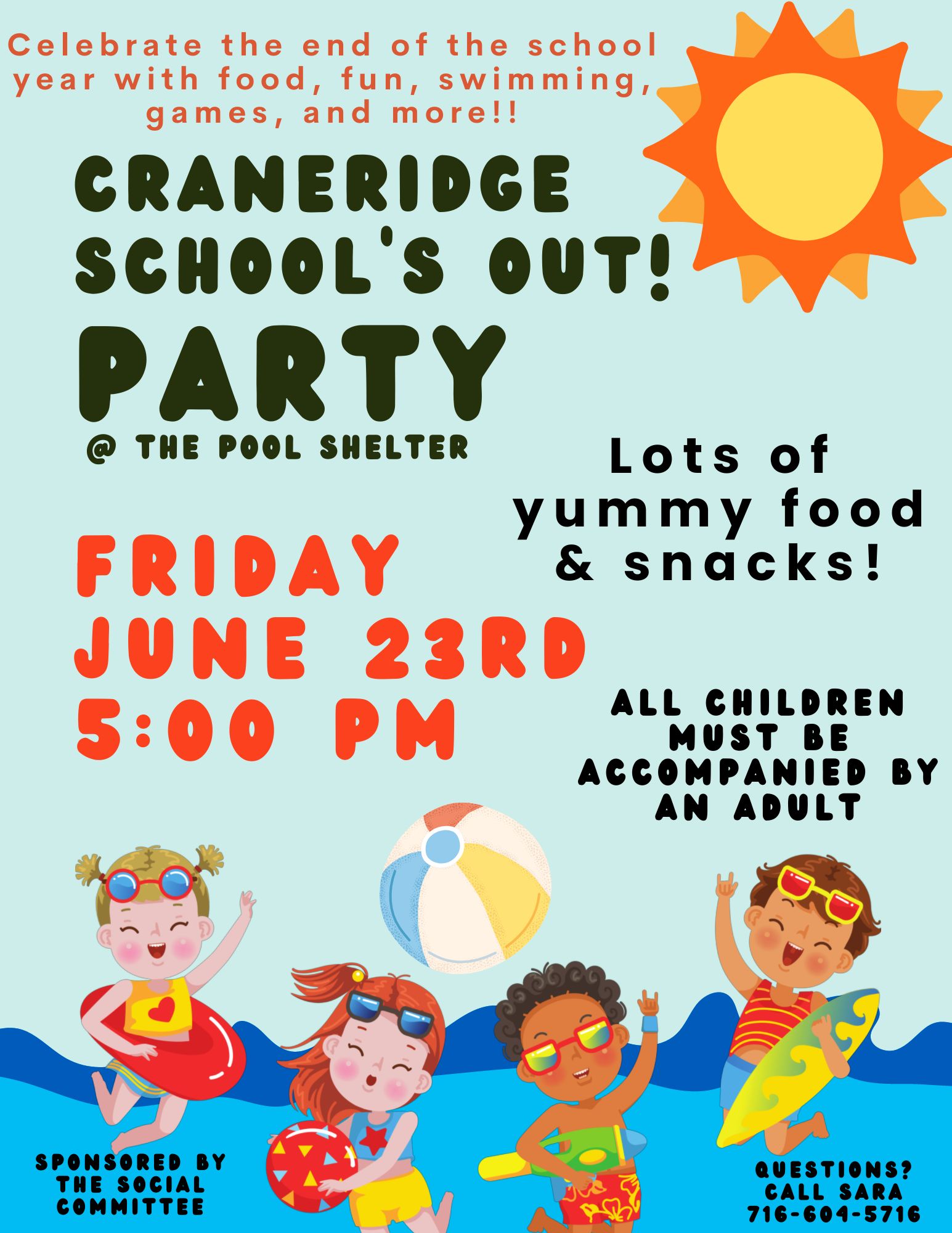 School’s Out Party for the Craneridge Kids on Friday, June 23rd, 5:00 pm