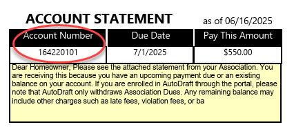 Look in the upper right corner of an HOA Assist statement that you received by email.
